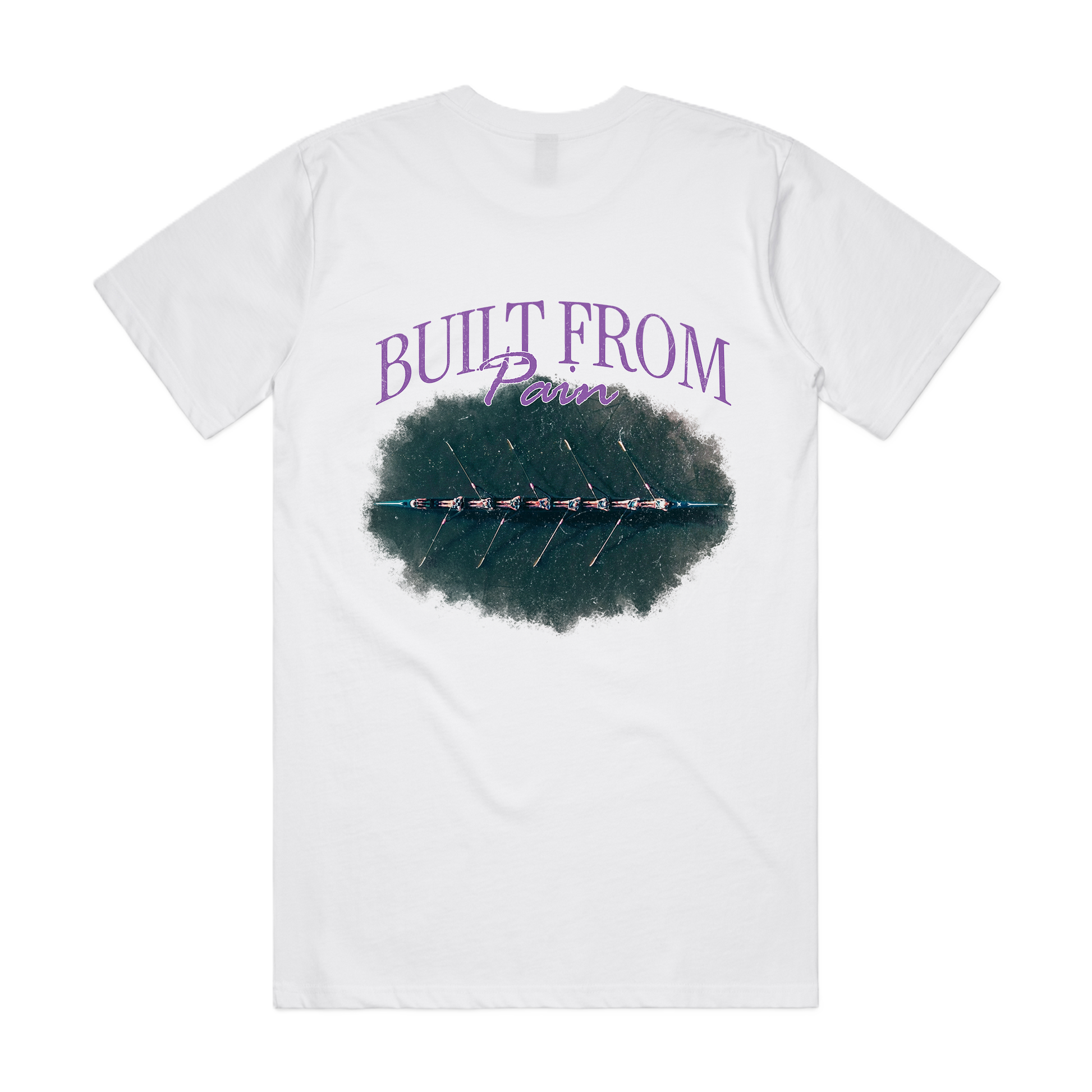 The Built From Pain Row Tee is designed for rowers who live the grind — and want to represent it beyond the boat shed. Featuring a bold 8+ illustration on the back and purple “Built From Pain” typography, this tee reflects the discipline, repetition, and resilience built on the erg and in the boat.